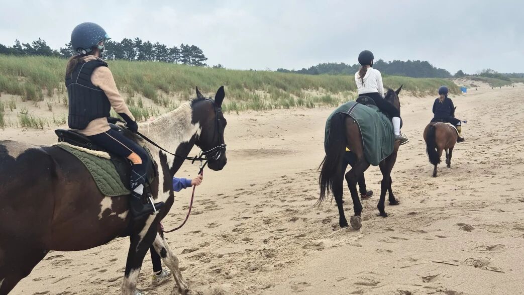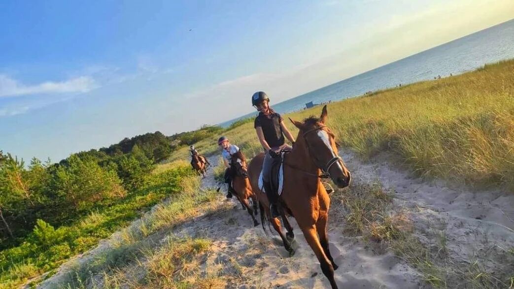 program obejmuje 12 godzin zajęć, w tym 7 godzin lekcyjnych to nauka jazdy konnej z instruktorem na Ranczo, a oprócz tego 1-godzina jazdy w terenie, brzegiem morza.